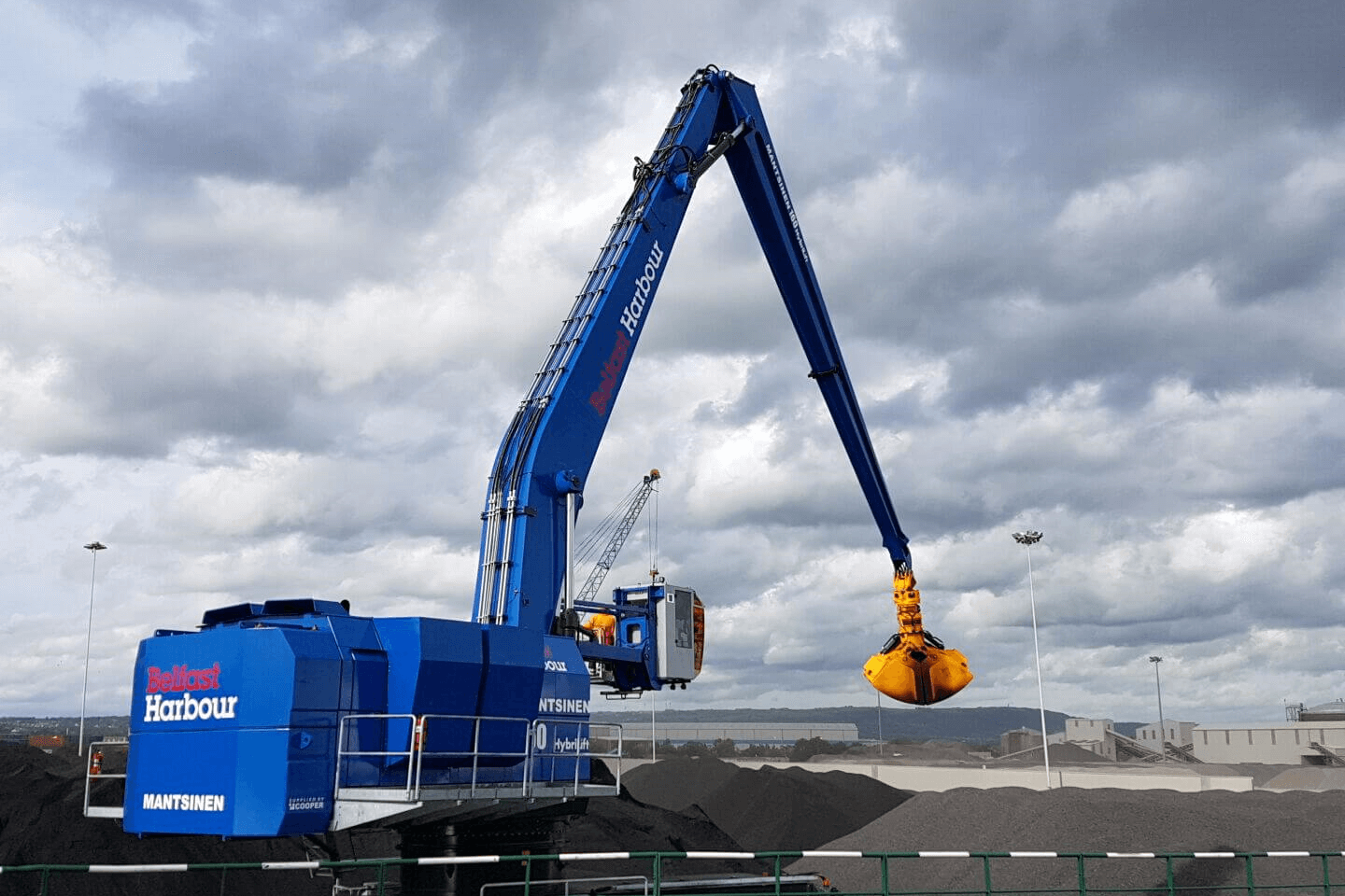 Mantsinen’s 160M machine is a wheeled hydraulic crane specified to service vessels visiting Belfast.  These range from 4,000-15,000dwt and handle a variety of products, but chiefly coal, scrap, grain and refuse-derived fuel. Consequently, the crane will be supplied with the Mantsinen MC620 quick change coupling device so that attachments can be interchanged in a matter of minutes.
